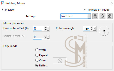 5 - Effects > Edge Effects > Enhance. Effects > Reflection Effects > Rotating Mirror: