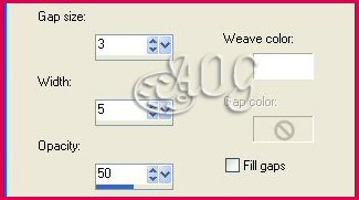 16- Ativar a layer Efeito 2 Effects > Texture Effects > Weave, somente mudando Gap Size para 5 Fechar a visibilidade desta layer