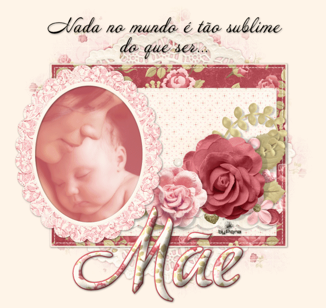 8- Ainda com a seleção abra a imagem Mãe. Dê rezise de 85%. Copie e cole abaixo da frame. Slections > Invert e aperte a tecla delete do teclado para retirar as sobras da imagem.