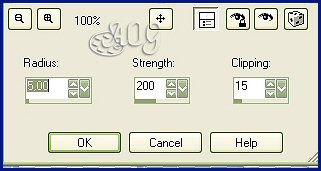 3- Abrir a mask no psp. Layers > New Mask Layer > From Image Procurar pela mask e aplicar Adjust > Sharpness > Unsharp Mask, nas configurações do print: