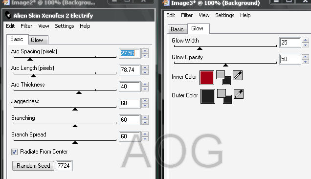 11- Selections > Modify > Expand > 2. Selections > Promote Selection To Layer. 12- Selection > None. Aplique o Drop Shadow do item 4 por duas vezes sendo que na segunda vez aplique as configurações de -1/-1-/100-5. 13- Nessa Layer que ficou com seu nome ajuste conforme a Tag que está em exibição. 14 - Aplique um jogo de bordas assim: 1ª borda com 2 pixels na cor mais clara. A 2ª borda com 6 pixels na cor mais forte selecionando e aplicando o efeito do item 10. E a 3ª repetindo a 1ª. 15- Abra o tube do baton e aplique colocando-o a direita do tube da mulher. 16 - Com a Ferramenta MagicWand Tool clique no centro da Layer em que está o tube do Baton. Vai ficar selecionado a Layer e o tube. Assim, vá em Selections > Inverte, ficando assim só o tube do baton selecionado. Aplique o efeito do plugin Xenofex 2 > Electrify nas seguintes configurações:
