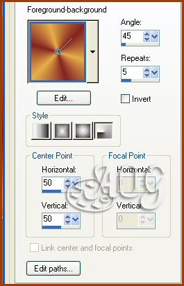 2- Retirar duas cores Eu escolhi as cores #9C3C08 para o Foreground e #EFCF9C para o Background Formar um gradiente conforme o print abaixo: 3- Abrir uma transparência 1024 x 400 px Pintar com o gradiente Effects > Plugin > Unlimited 2.0 > Déformation > Alias Blur > 45/45, como no print abaixo: Effects > Edge Effects > Enhance 4- Ativar o tube da paisagem escolhida Edit > Copy 5- Ativar o Top que está sendo trabalhado Nova Layer Selections > Select All Edit > Paste > Into Selection Retirar a seleção