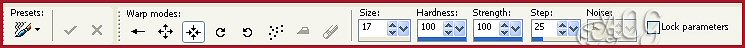17- Ativar a layer Noel 3 Com a ferramenta Warp Brush, configurada como o print abaixo: