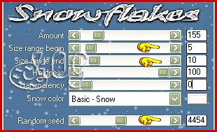Fechar a visibilidade desta layer e abrir a Neve 2 Aplicar o mesmo plugin Snowflakes, conforme o print abaixo: