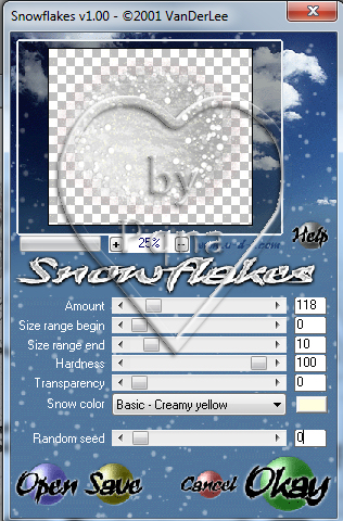 15- Ainda com a seleção, aplique na layer bolha1 o efeito Snowflakes nas configurações abaixo: