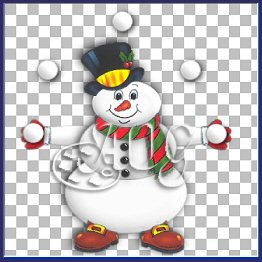 20- Ativar a imagem do Boneco de Neve Ativar a layer Corpo Edit > Paste > a New Layer Posicionar sobre a mão esquerda Effects > 3D > Drop Shadow > 2/2/80/10 color preto Duplicar esta layer 4 vezes Renomear de baixo para cima Bola 1, Bola 2, Bola 3, Bola, 4 e Bola 5 Posicionar as bolas de neve sobre o boneco. Veja o print: