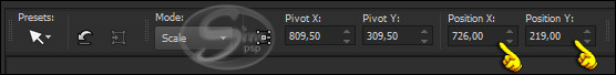 65- Activate the "Pick" Tool (K) and modify the positions of X (726.00) and Y (219.00):