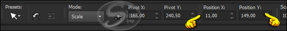 70- Activate the "Pick" Tool (K) and modify the positions of X (11.00) and Y (149.00):
