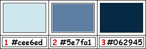 01- In your Materials palette: Foreground color (2) #5e7fa1 Background color color (1) #cee6ed