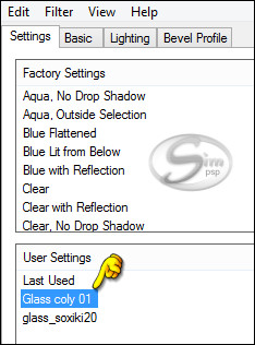 27- Effects > Plugins > Eyes Candy 5 Impact > Glass: User Settings: Glass coly 01