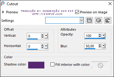 22- Selections > Select All. Selections > Modify > Contract: 30 Effects > 3D Effects > Drop Shadow: cor do Foreground: #582973