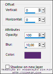 12- Selections > Modify > Expand: 4 Effects > 3D Effects > Drop Shadow: cor do Foreground: #582973