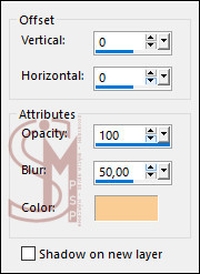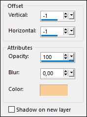 5 - Selections > Invert. Effects > 3D Effects > Drop Shadow: Color > Background #f9cd93