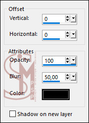 30 - Selections > Invert. Effects > 3D Effects > Drop Shadow: 0, 0, 75, 25, color #000000 (Preto) Selectioins > Selec None.