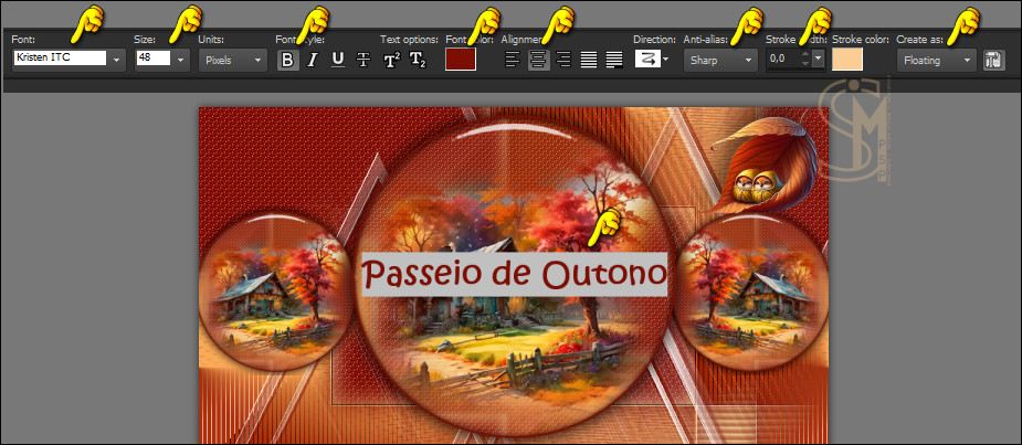 26 - Ative a ferramenta Pick Tool (K) e configure as posições de X: 330,00 e Y: 495,00 O meu texto usou essas mesmas configurações X e Y da posição do texto original.