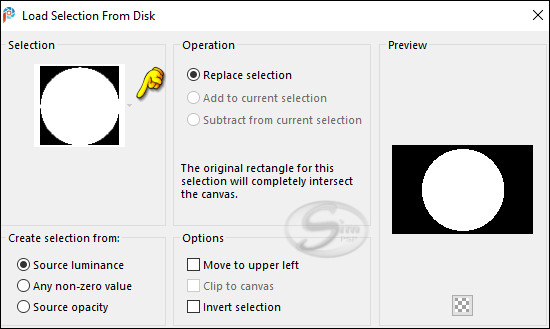 Layers > Properties > General > Opacity: + ou - 70% Layers > New Raster Layer. Selections > Load/Save Selections > Load Selection From Disk: SELECTION 1 194