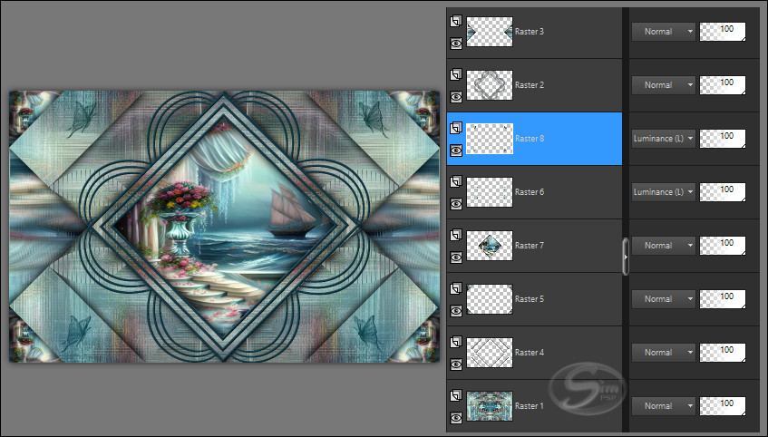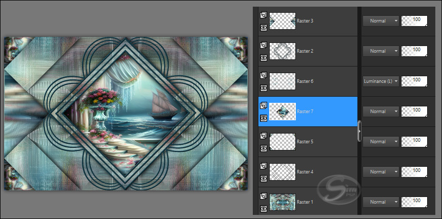 07 - Ative o DECO PERSO 1 195 AVRIL 2023 SWEETY. Edit > Copy e volte ao trabalho. Edit > Paste as New Layer. Não mova, está no lugar certo. Layers > Properties > General > Blend Mode: Luminance (Legacy) Layers > New Raster Layer. Selections > Load/Save Selections > Load Selection From Disk: SELECTION 5 195