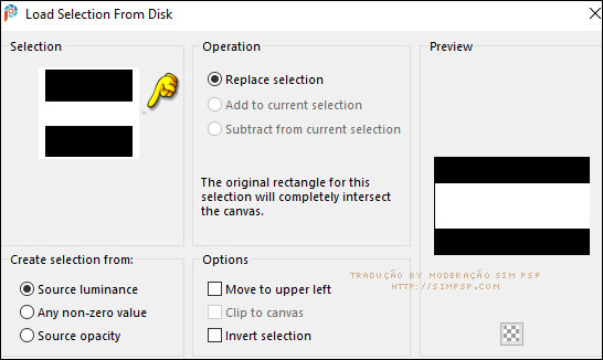 Ativar a layer Raster 1... Selections > Load/Save Selections > Load Selection From Disk: SELECTION 2 203