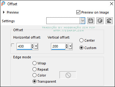 Foreground: #194756 Abra uma nova imagem transparente de 950x600. Pintar com a cor do Foreground: #194756 Effects > Image Effects > Offset: