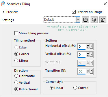 11- Image > Add Borders > Symmetric: 3 px - Color: Background: #8ec2b5 Selections > Select All. Image > Add Borders > Symmetric: 30 px - com qualquer cor. Effects > Image Effects > Seamless Tiling: Default