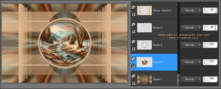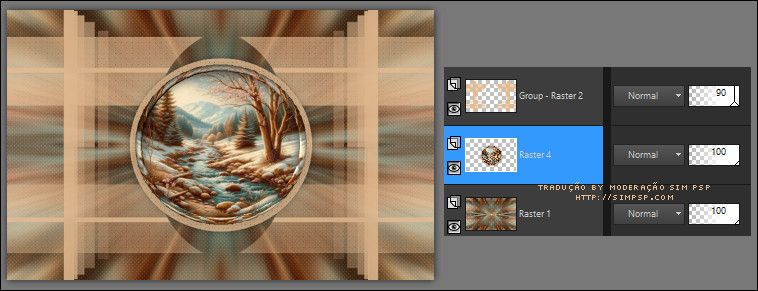 10- Volte a imagem que estamos trabalhando... Ativar a layer Group - Raster 2... Layers > Properties > General > Opacity: 50% (na 2ª versão não foi alterada)