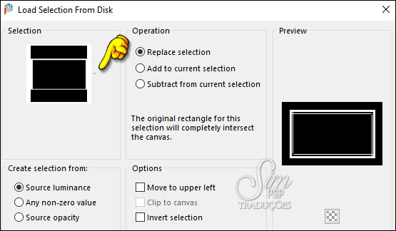 06 - Ativar a layer Raster 1. Layers > New Raster Layer. Novamente > Selections > Load/Save Selections > Load Selection From Disk: SELECTION 1 217