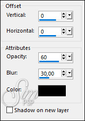 Layers > Duplicate. Layers > Merge > Merge Down. Selections > Select None. Effects > 3D Effects > Drop Shadow: com a cor do Foreground: #667497