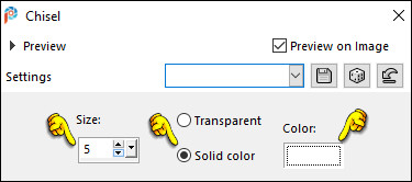 Layers > New Raster Layer. Preencha a seleção com a cor do Background: #f2d6ac Effects > 3D Effects > Chisel: