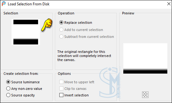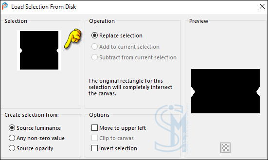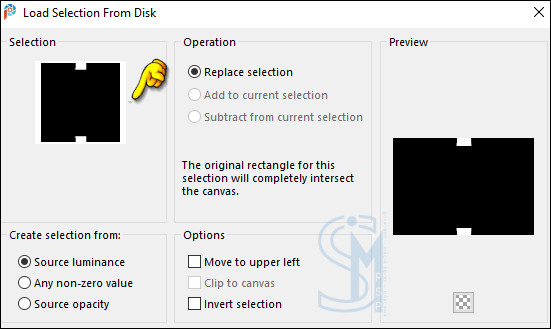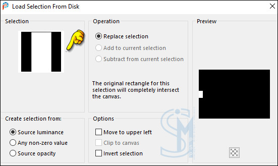 03 - Layers > New Raster Layer. Selections > Load/Save Selections > Load Selection From Disk: SELECTION 1 222