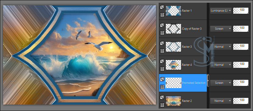 ***************** Nota da autora: Opcional Nessa versão apliquei na layer raster 2 o efeito: Effects > Reflection Effects > Rotating Mirror: Default *****************