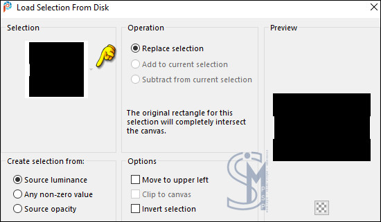Ative a camada Promoted Selection. Selections > Load/Save Selections > Load Selection From Disk: SELECTION 1 224