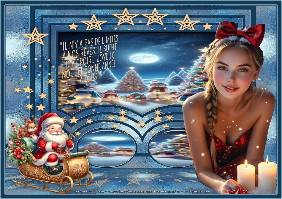 Ative a cópia do arquivo Personagem: OCTOBRE 2025 PERE NOEL EN TOURNEE 22 10 25 SWEETY Edit > Copy e volte ao trabalho. Edit > Paste as New Layer. Image > Resize: 60%, all layers desmarcado. Posicionar à esquerda do trabalho.