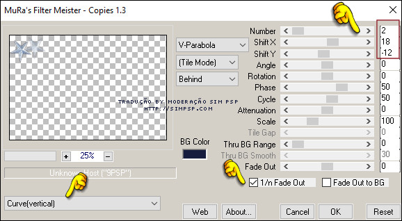 Pressione a tecla "M" para desativar a "Ferramenta Pick". Effects > Plugins > Mura's Meister > Copies: