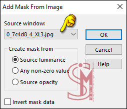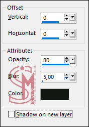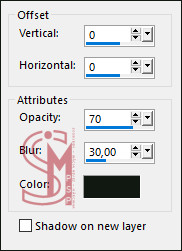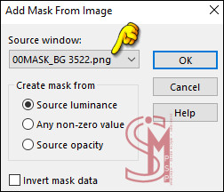 02 - Layers > New Mask layer > From image: 00MASK_BG3522 Edit > Paste as New Layer. Ativar a ferramenta Pick e configure: Position X: 21,00 - Position Y: 12,00. Pressione a tecla "M" para desativar a "Ferramenta Pick". Effects > 3D Effects > Drop Shadow: color: #000000 (preto)