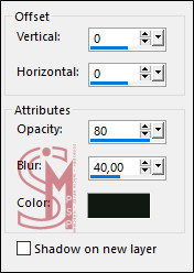 Image > Resize: 90%, resize all layers desmarcado. Posicionar à direita. Effects > 3D Effects > Drop Shadow: color: #000000 (preto)