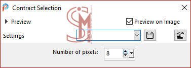 Selections > Modify > Contract: 2 Layers > New Raster Layer. Preencha com a cor escura do Background. Selections > Modify > Contract: 15