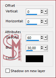 Effects > 3D Effects > Drop Shadow: 0 / 0 / 60 / 30, color #000000 (preto)