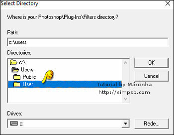 Nesse momento fique atento ao local de onde está sua pasta que salvou os plugins e vá seguindo até encontrar a pastinha do plugin, no meu caso como indiquei logo no começo que a minha pasta fica em C:\Users\User\Documents\Plugins\Executaveis no seu computador pode estar com outro nome caso você tenha indicado um nome para ele quando instalou o sistema, então preste atenção nesse nome e anote porque ele será indicado no processo de aplicar o serial: