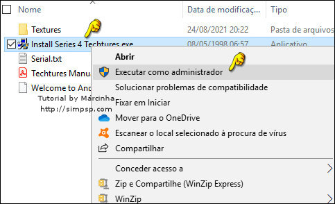 É muito importante que você fique bem atento ao local da sua pasta de plugins e onde vai salvar cada um, pois irá precisar informar o nome do "User" quando for aplicar o Serial. Depois de descompactar a pasta de cada plugin clique com o botão direito do mouse sobre o .exe (executável) do plugin e vá em Executar como administrador...