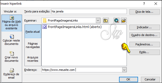 do destino. Exemplo: Clique em OK. Assim, quando alguém clicar na palavra/ frase ou imagem, será direcionado para o link escolhido.