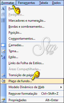 Clique em OK. Para que a palavra ou frase com link fique com uma cor diferente do resto do texto, clique no menu Formatar → Plano de fundo...