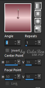 3 - Pintar com a um gradiente > Linear > Angle 0 > Repeats 1 - Invert desmarcado.