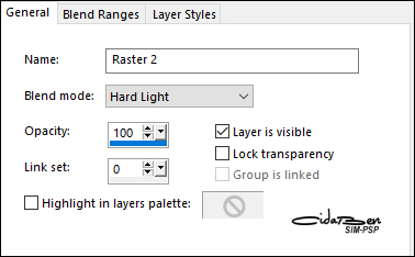 8 - Ativar a layer Raster 2. Layers > Properties > General > Blend Mode > Hard Light.
