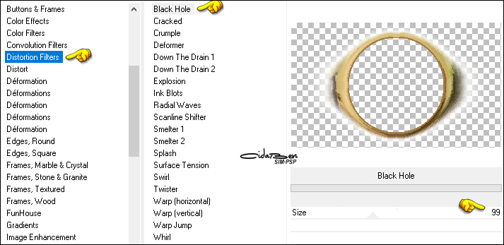 Ativar a Layer > Copy of Raster 2. 9- Effects > Plugins > Filters Unlimited 2.0 > Distortion Filters > Black Hole.