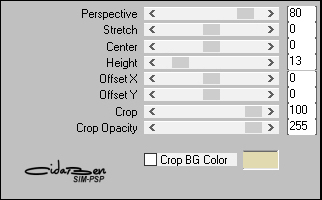 7 - Effects > Geometric Effects > Perspective Horizontal: Distortion 80: > Transparent.