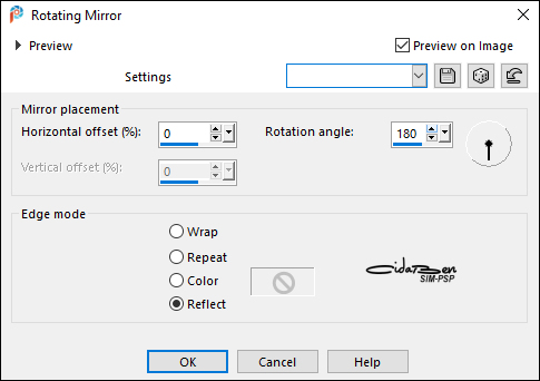 Layers > Arrange > Bring To Top. Effects > Reflection Effects > Rotating Mirror.
