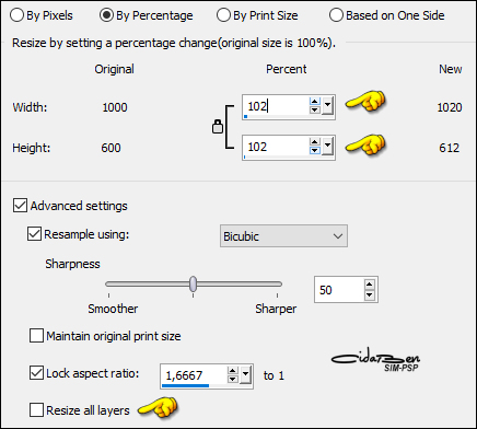 Image > Resize > 102 % > Resize all Layers > desmarcado