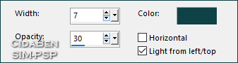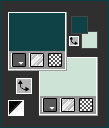 33 - Pintar a seleção com a cor do Background #cde3d6. Layers > New Raster Layer. Selections > Modify > Expand: 1 Pintar essa seleção com a cor do Foreground: #074145 Layers > Arrange > Move Down. Selections > Select None. Effects > 3D Effects > Drop Shadow: 5, 5, 30, 2, Color #000000.