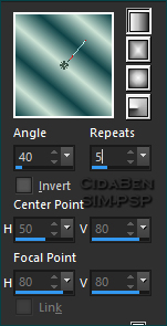 Pintar a seleção com o gradiente Linear, Angle 40, Repeats 5, formado pelas cores em uso: