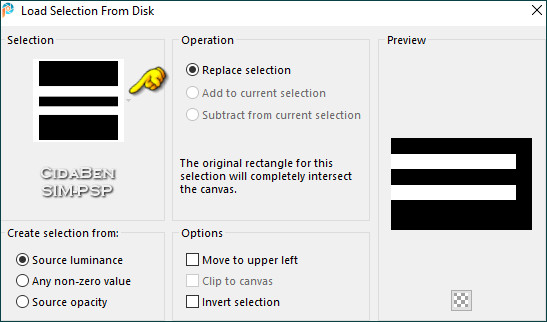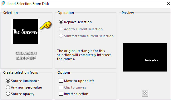 32 - Selections > Select None. Layers > New Raster Layer Selections > Load/Save Selections > Load Selection From Disk: Sel_25_CBen3.